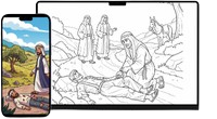 Ilustrações de Jesus contando as parábolas diretamente às crianças , inserindo-as no contexto do material